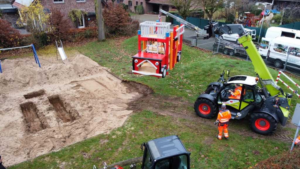Mit dem neuen Feuerwehr-Spielgerät entsteht nicht nur ein moderner Spielbereich, sondern auch ein Symbol für Zusammenhalt und Engagement. Pünktlich zum Jubiläum der Feuerwehr-Einheit Veen wird dieser besondere Ort den Kindern eine sichere und kreative Möglichkeit zum Spielen und Toben bieten.