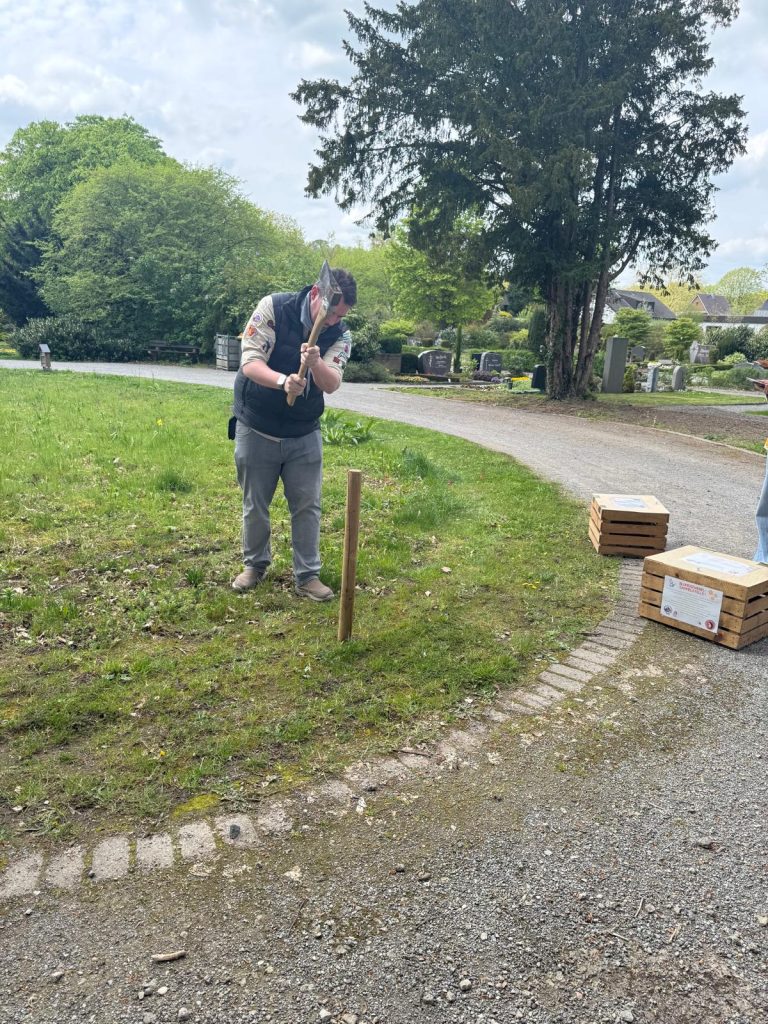 Auf dem Friedhof sammeln wir – die Igelfreunde und die Pfadfinder Alpen – verblühte Blumenzwiebeln, damit sie ein zweites Leben bekommen.