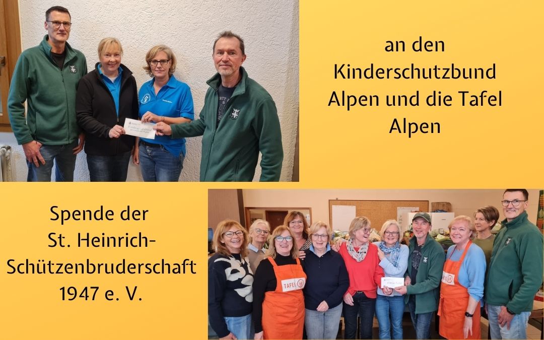 Jetzt konnte durch den Vorstand der St. Heinrich Schützenbruderschaft Spenden an die Alpener Tafel und den Kinderschutzbund übergeben werden.